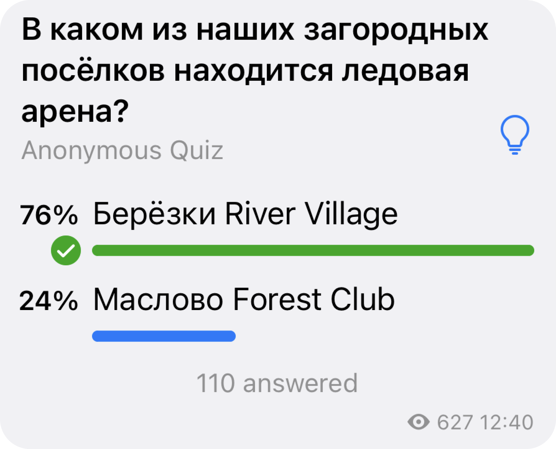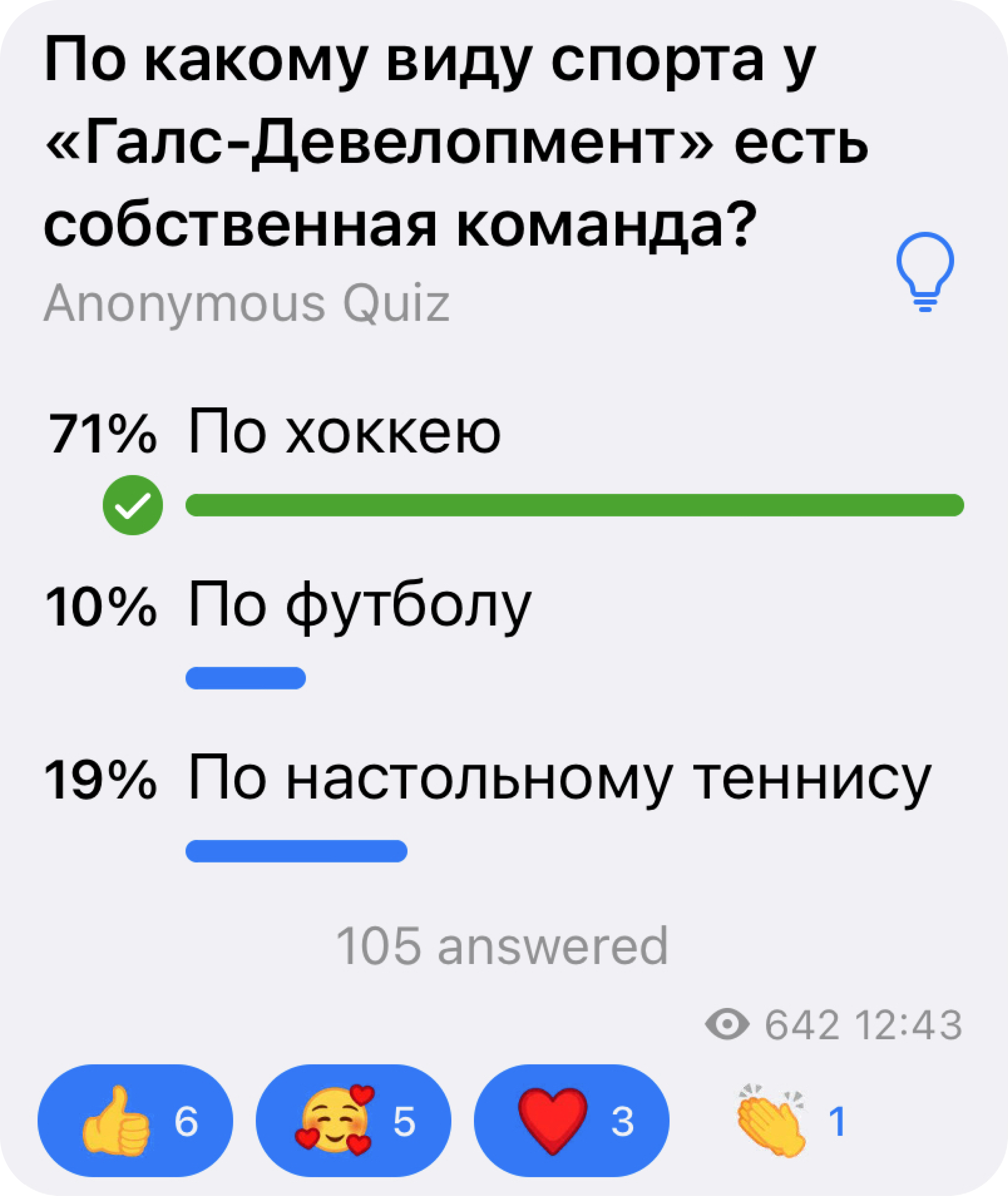 Пример формата викторины в телеграм-канале «Галс-Девелопмент»