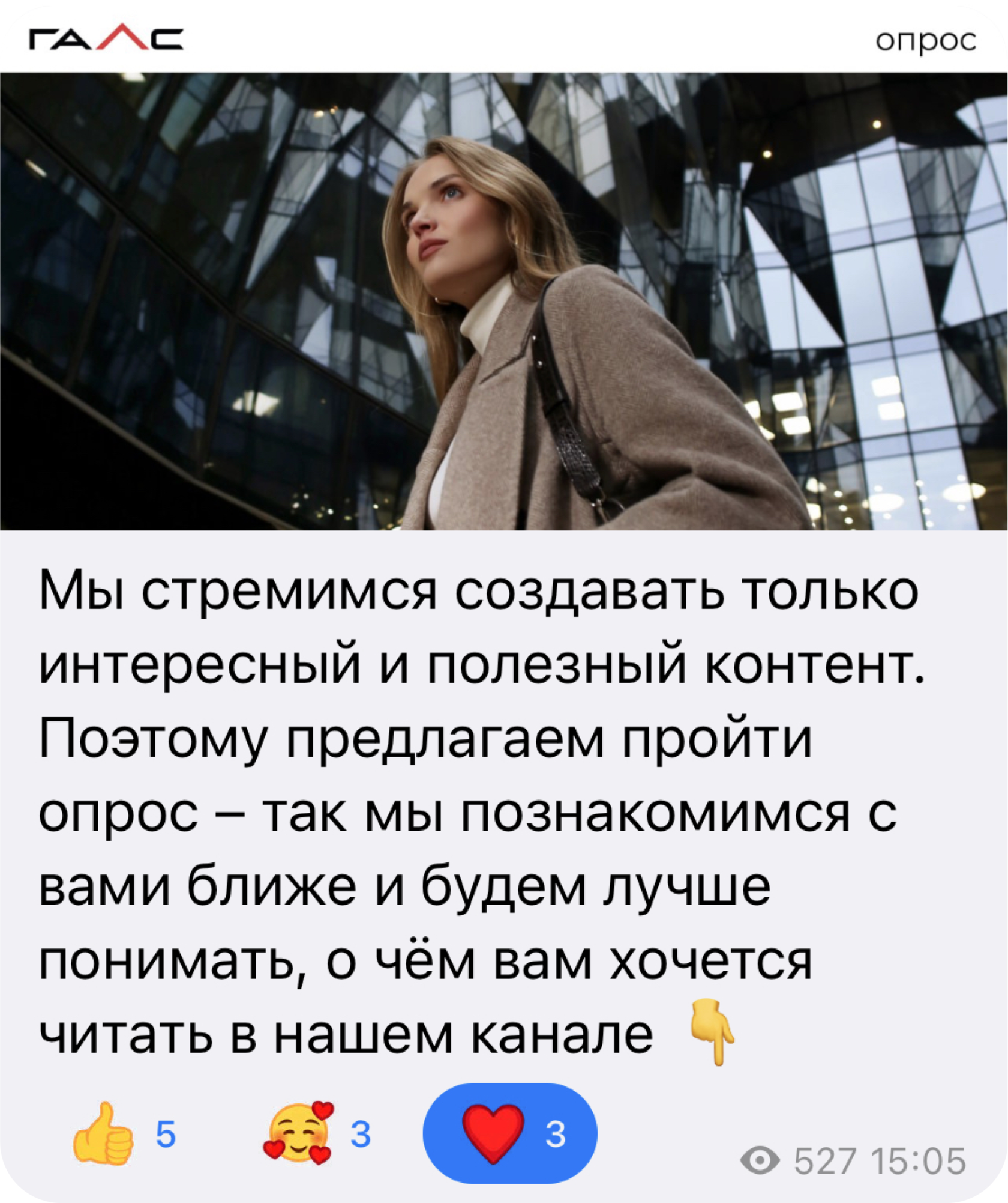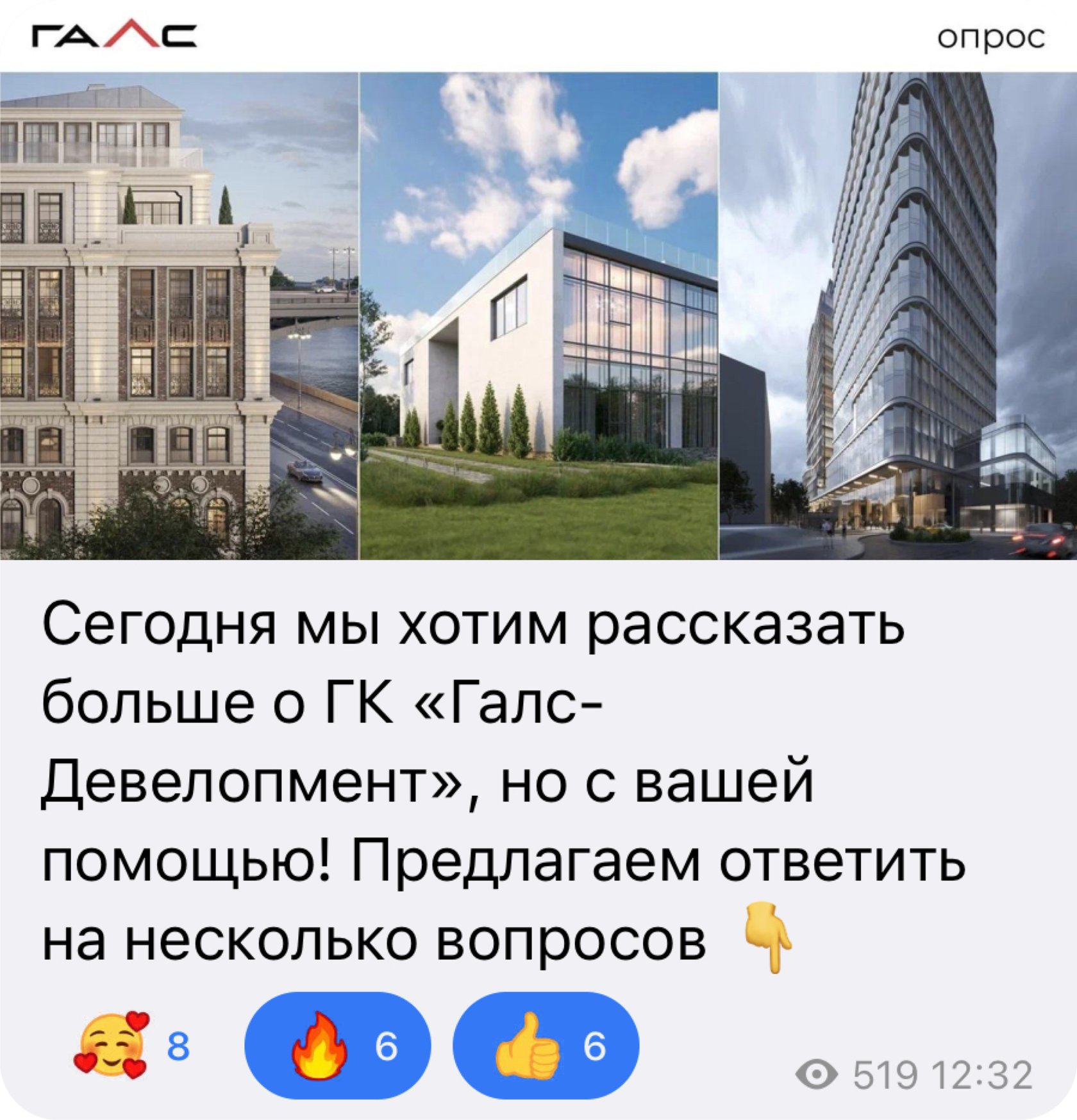 Пример развлекательного поста в телеграм-канале «Галс-Девелопмент»